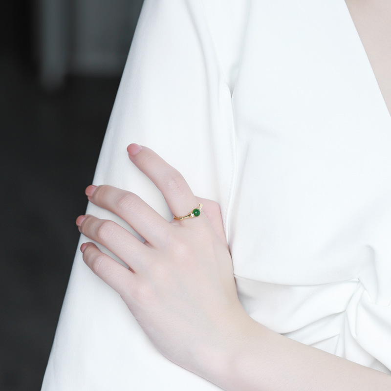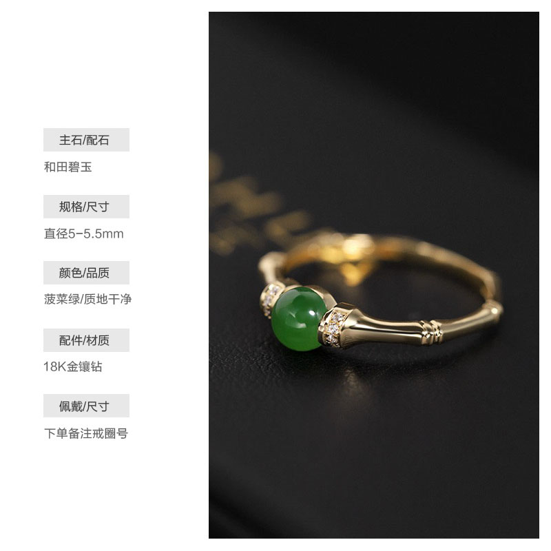 若华珠宝竹节#国潮和田玉碧玉戒指女18K金钻石尾戒玉石指环礼物