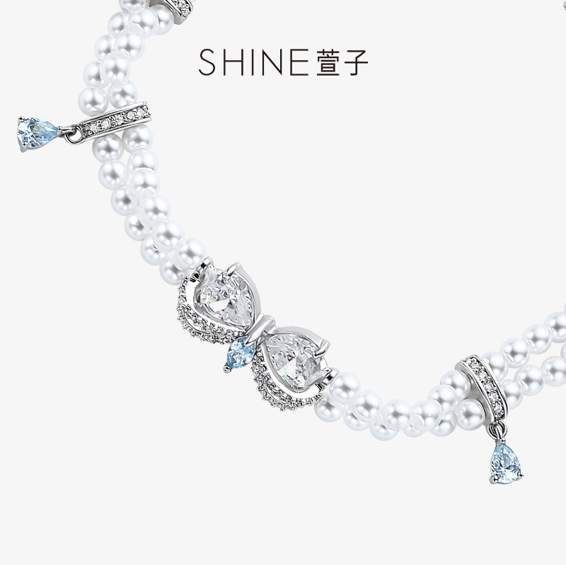 [限时活动]SHINE萱子饰品蓝色恋人系列甜美珍珠双层手链