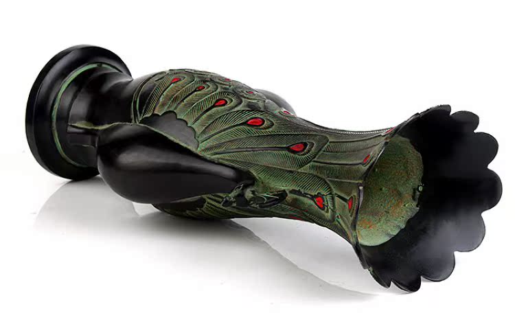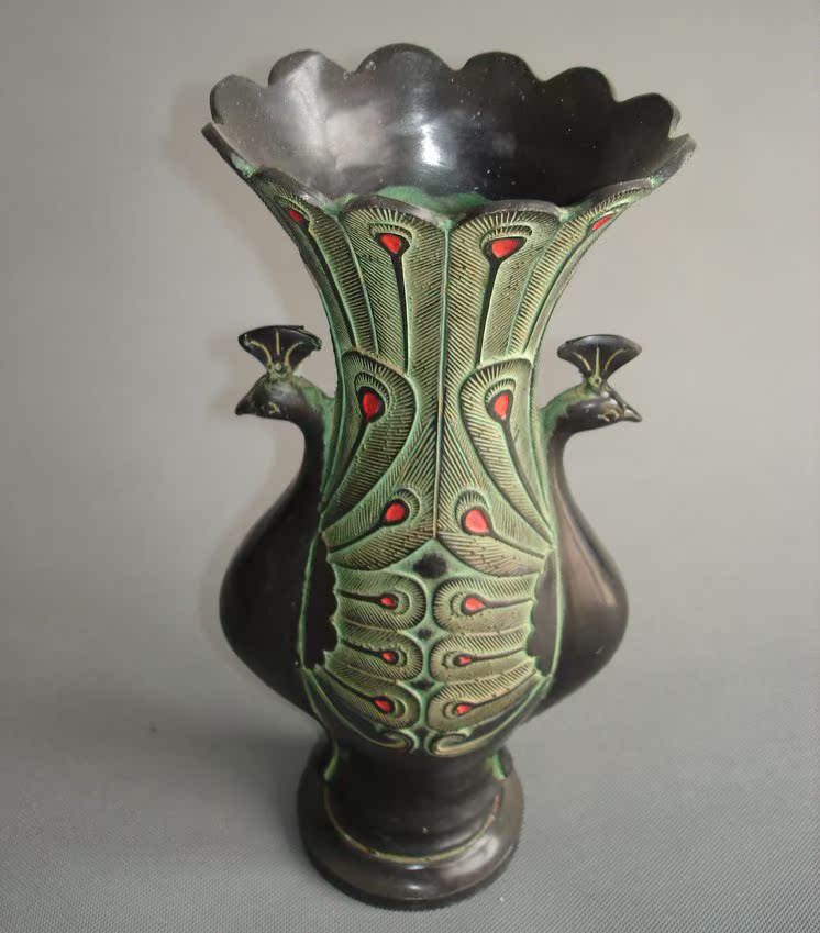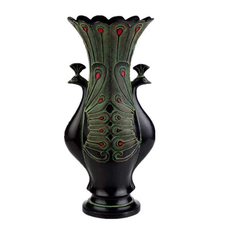仿古青铜器风水客厅摆件古玩古董收藏品双凤尊花瓶家居装饰老礼品