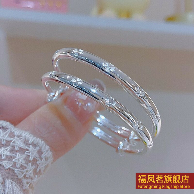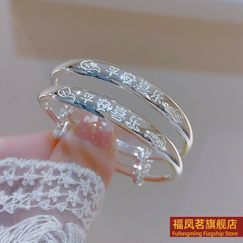 正生新款足银9999平安喜乐竹节四叶草福字纯银手镯男女宝宝婴儿款