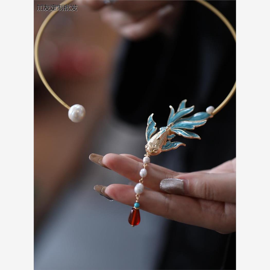 古风马面裙配饰璎珞流苏新中式项圈凤凰天然淡水珍珠锁骨链项链
