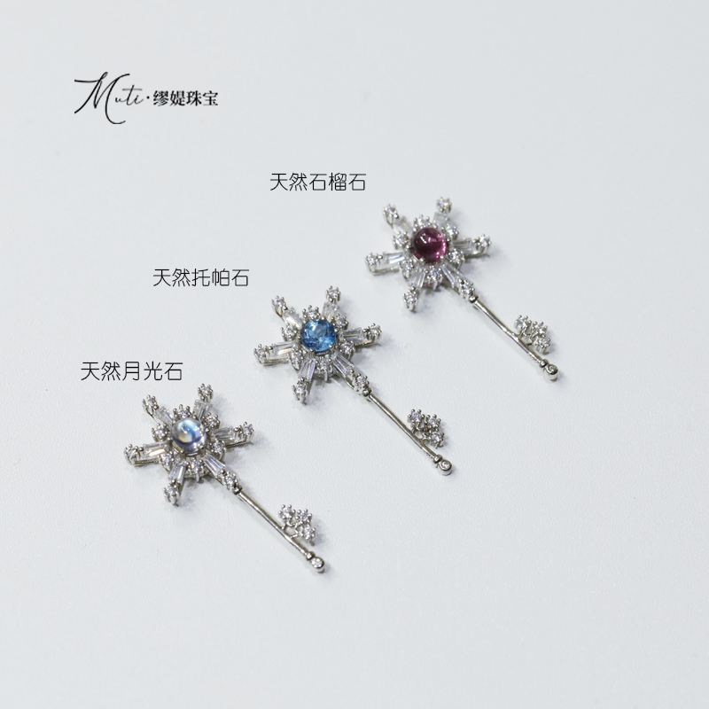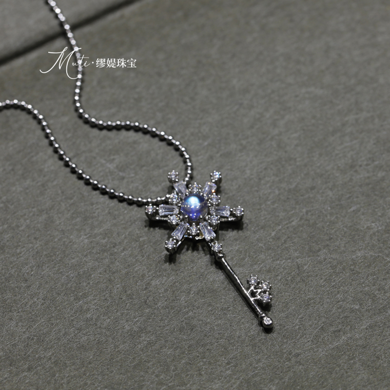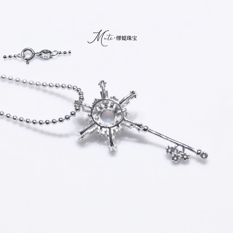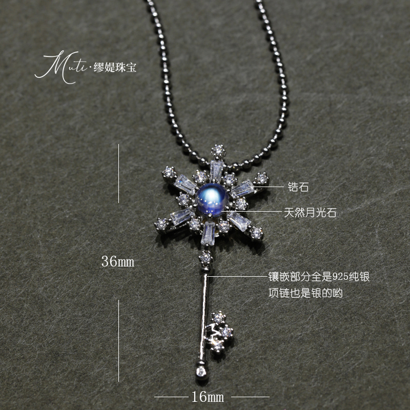 雪花吊坠天然月光石项链纯银水晶锁骨链简约小众设计简约礼物百搭