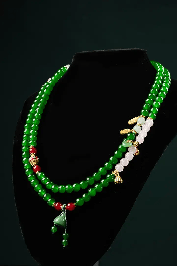Sun雅乔 祖母绿毛衣链古风双层叠戴项链百搭新中式国风串珠项链
