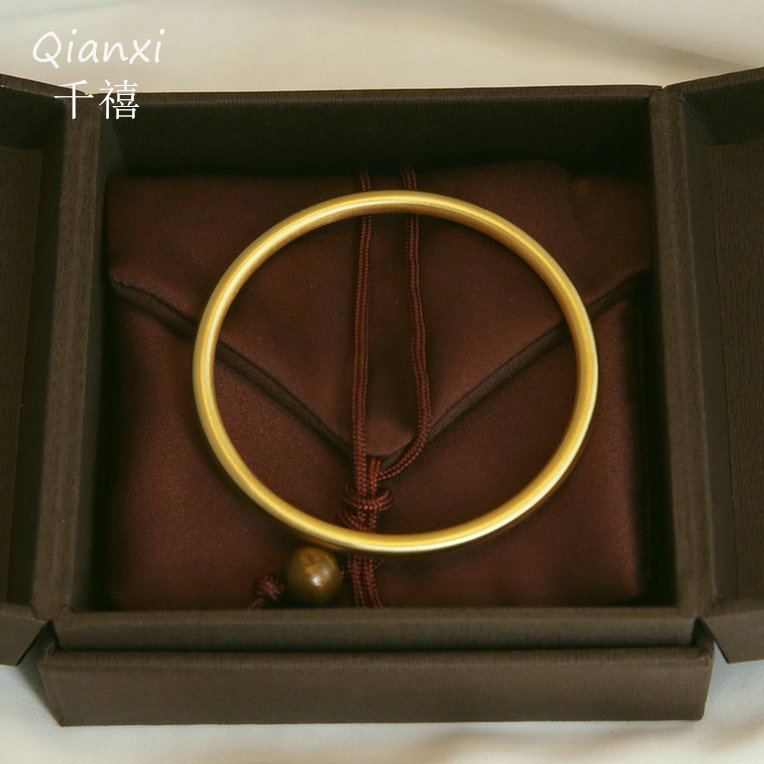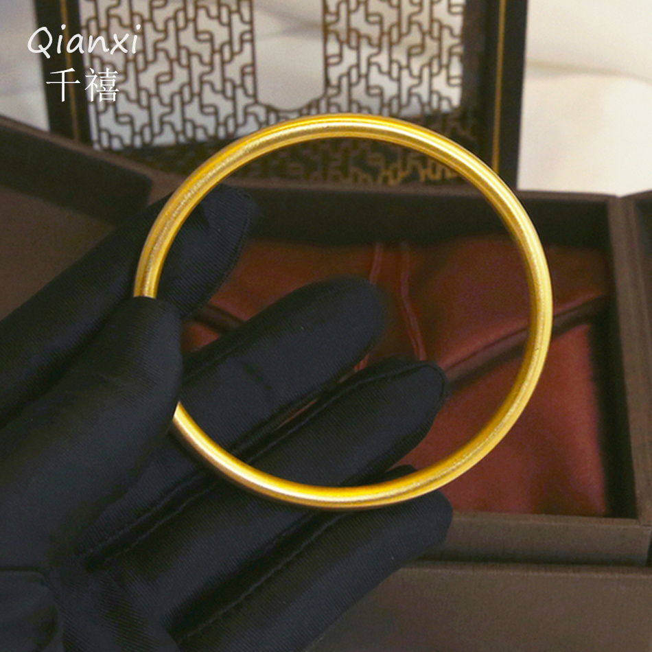 【洗澡免摘】钛钢金色古法磨砂手环4mm素圈镯子实心传承同款手镯