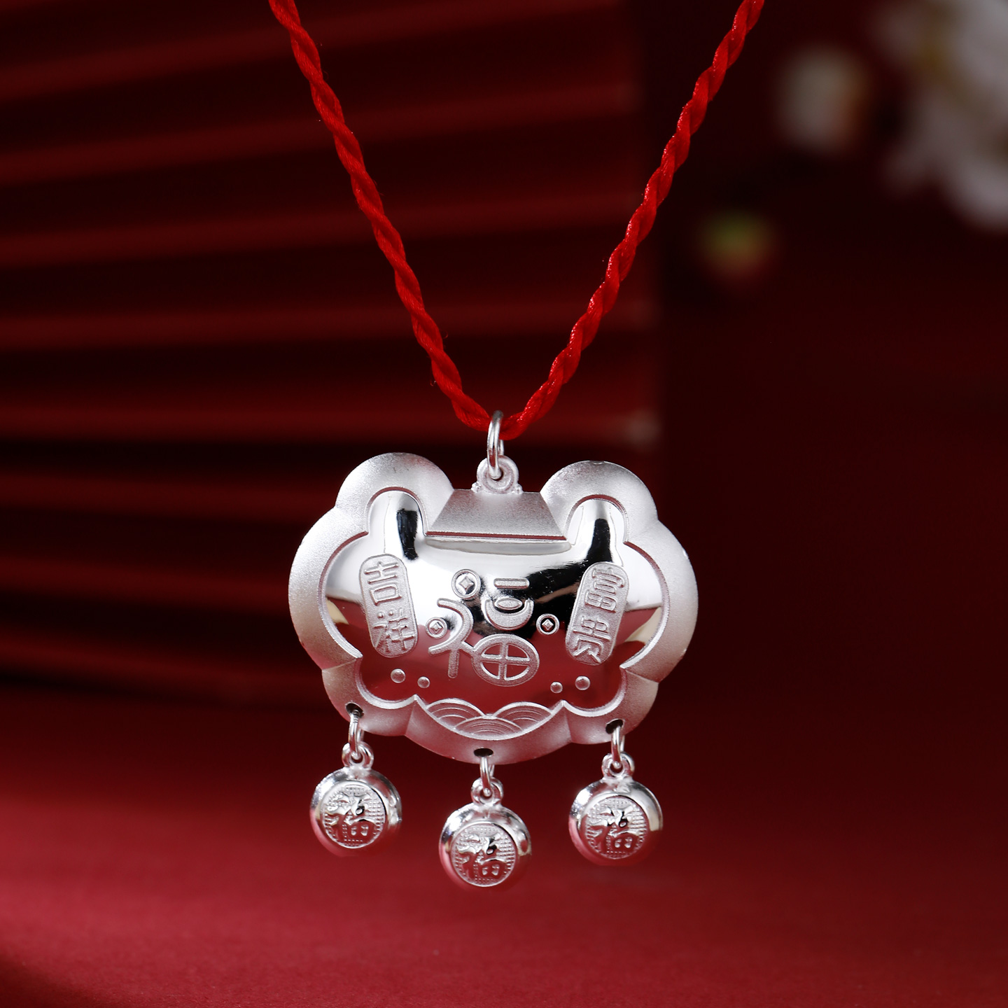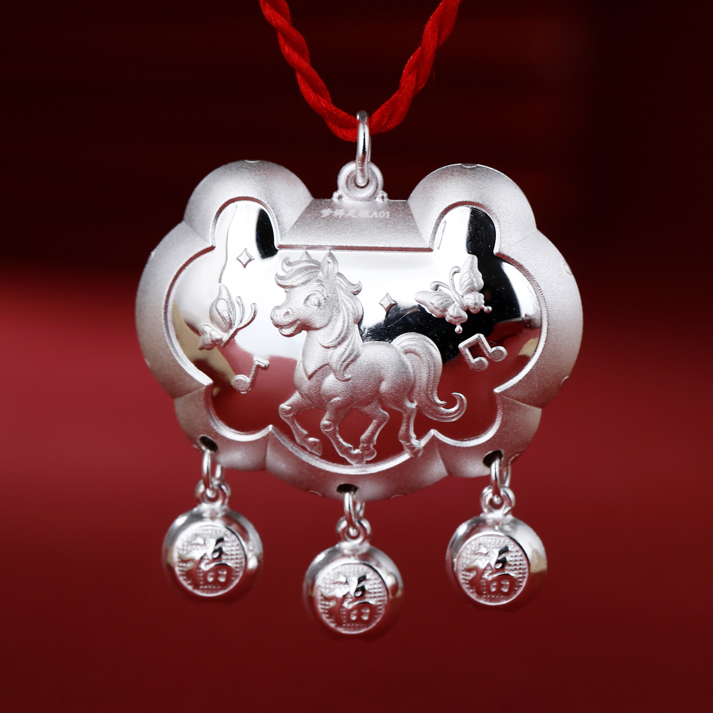 梦祥银锁包足银马宝宝银锁红绳银长命锁百天礼物银吊坠婴儿周岁礼
