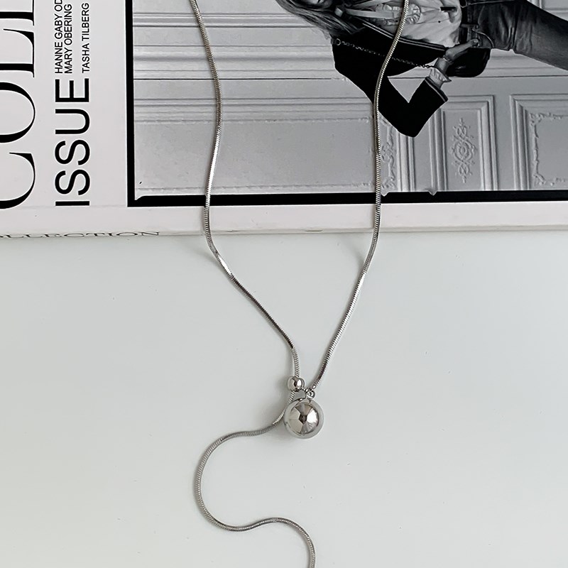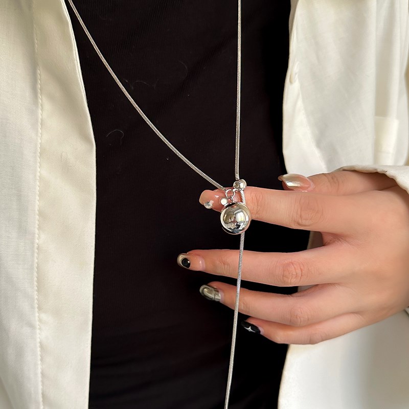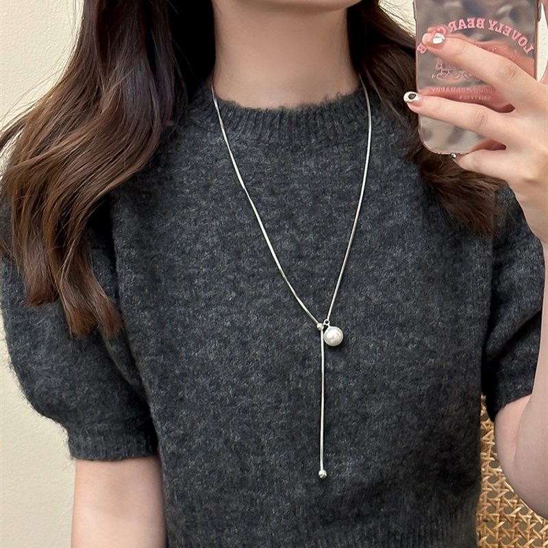 2023秋冬新款韩版珍珠吊坠金属抽拉可调节项链高级感毛衣链潮人女