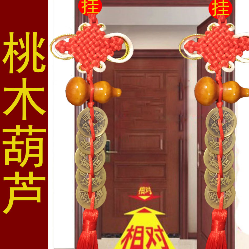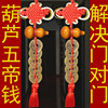 五帝钱真品摆件纯铜卧室客厅桃木葫芦古钱币门对门客厅挂件黄铜钱