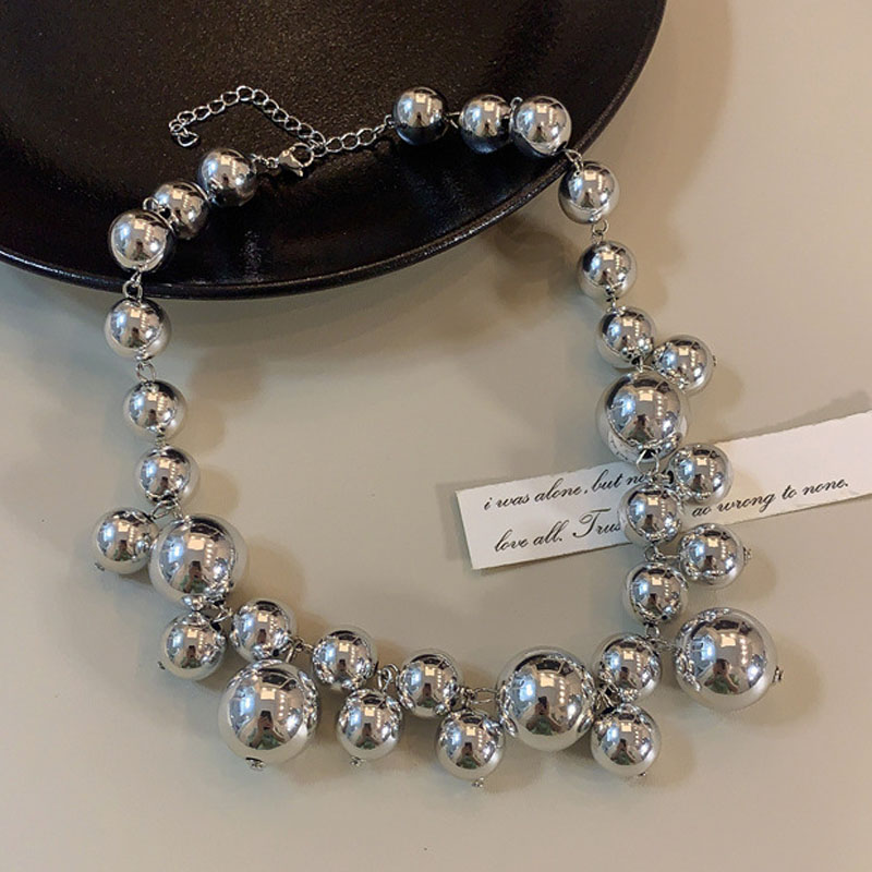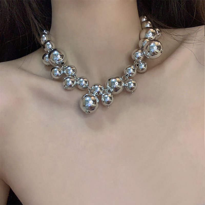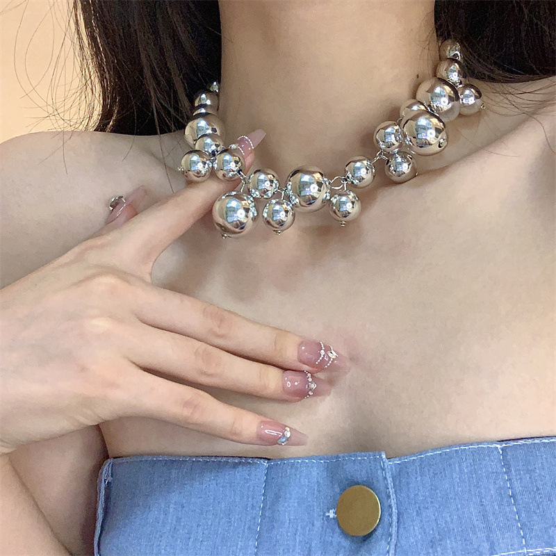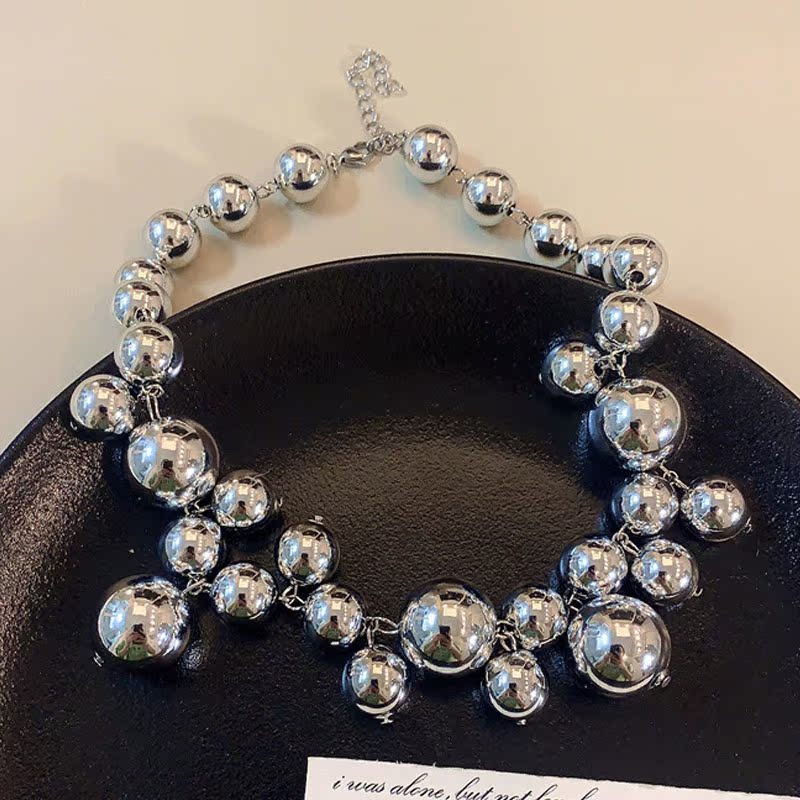 复古小众设计镀银金属球项链海葡萄圆珠链链条夸张锁骨链女