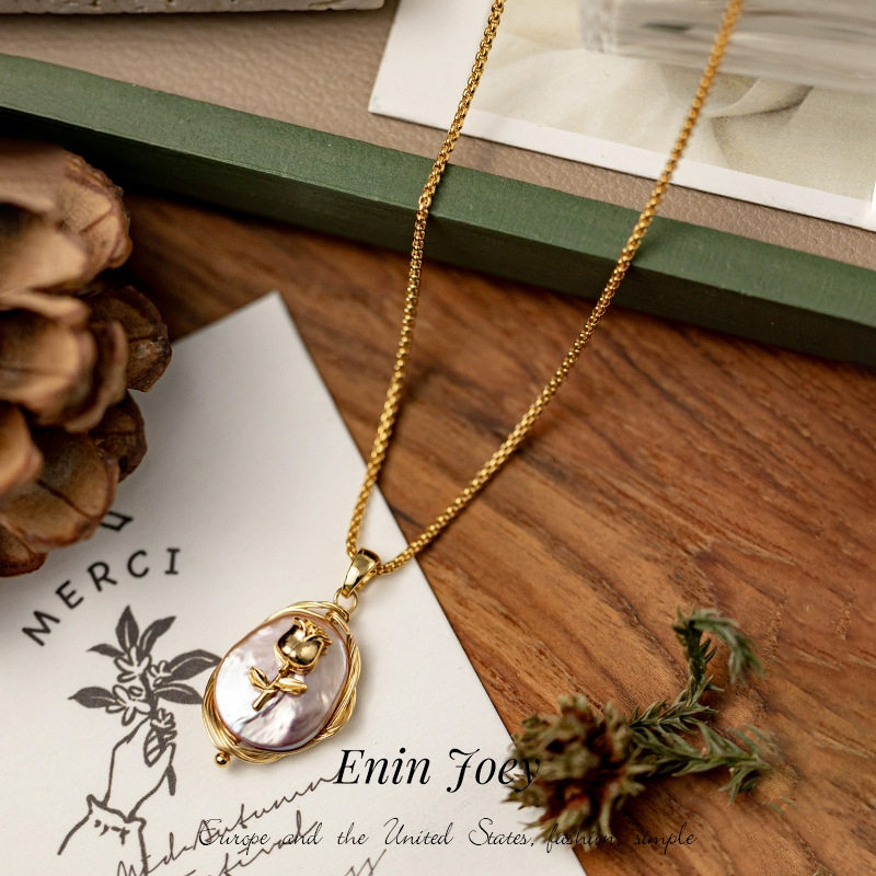 巴洛克珍珠玫瑰花项链2024新款秋冬高级感毛衣链精美玫瑰传承礼盒
