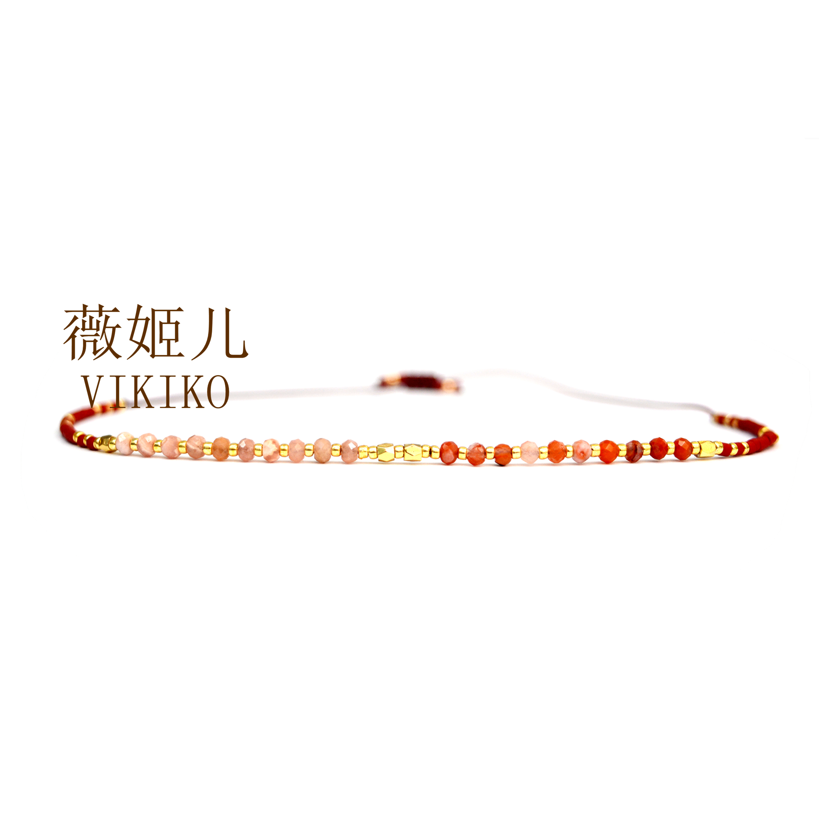 VIKIKO新款甜美全新 冥王细友谊红纹石手链女红玛瑙手绳女生礼物