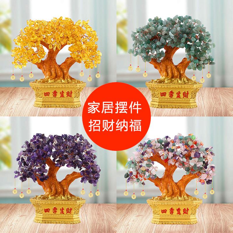 黄水晶发财树电视柜摆设家居客厅酒柜装饰品摆件创意小招财摇钱树