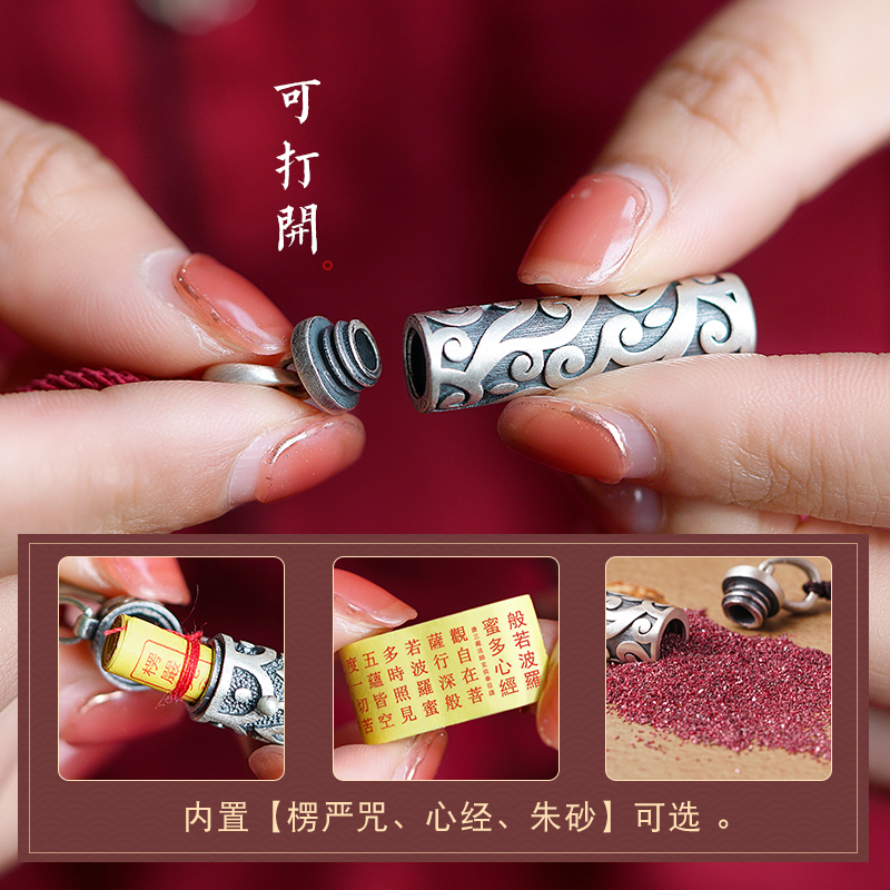 纯银嘎乌盒c朱砂心经楞严咒吊坠男护身符项链女藏式空心可打开大