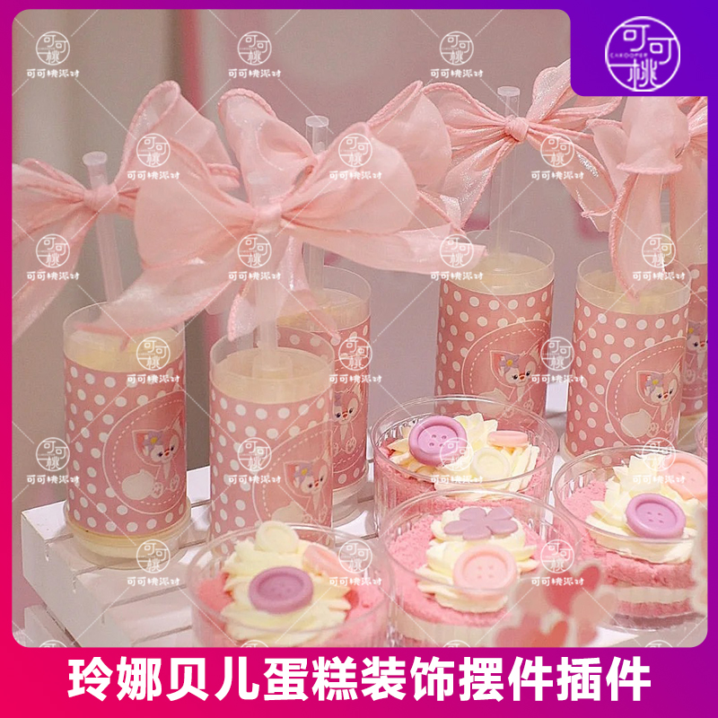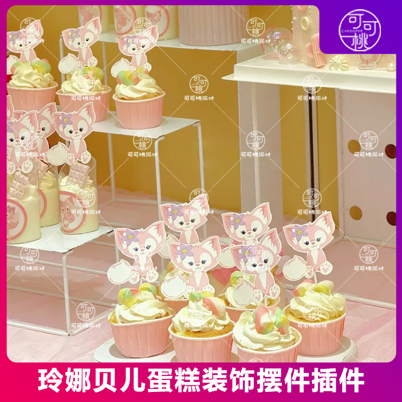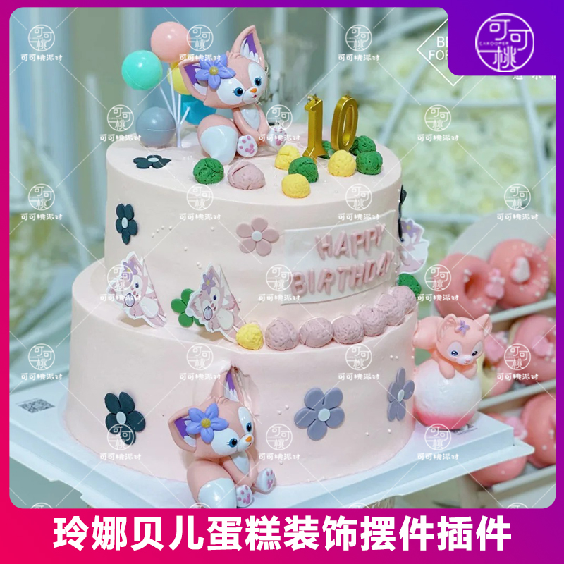 生日琳娜贝尔蛋糕装饰粉色系川沙妲己狐狸小摆件玩具烘焙小熊插件