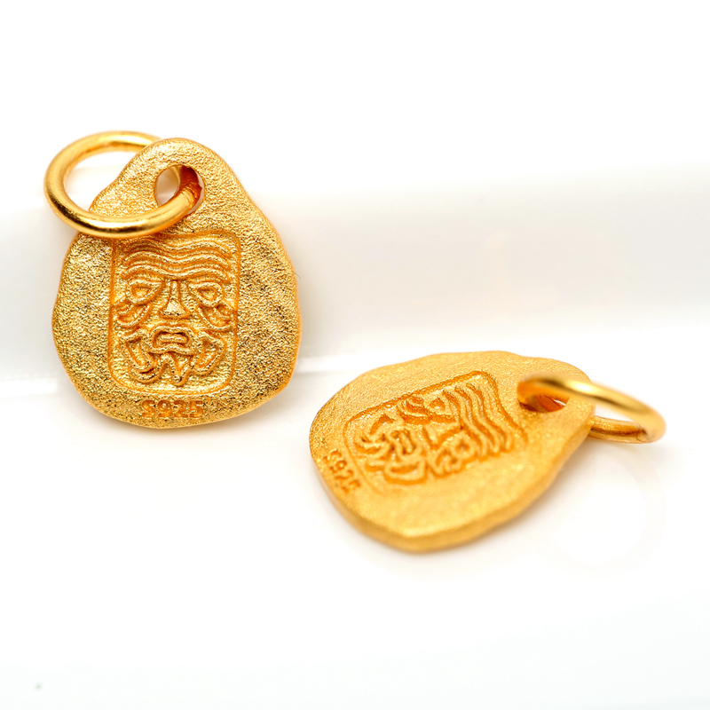 古法银扎基拉姆唐卡吊坠925纯银镀金六字真言五路财神挂件diy配件