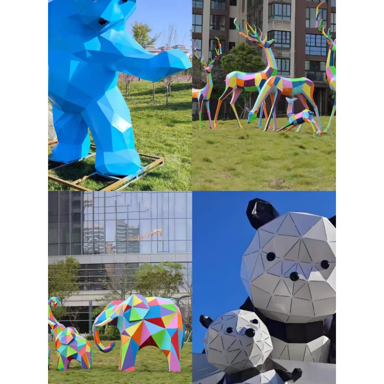 不锈钢几何抽象雕塑网红熊户外园林景观动物雕塑定制