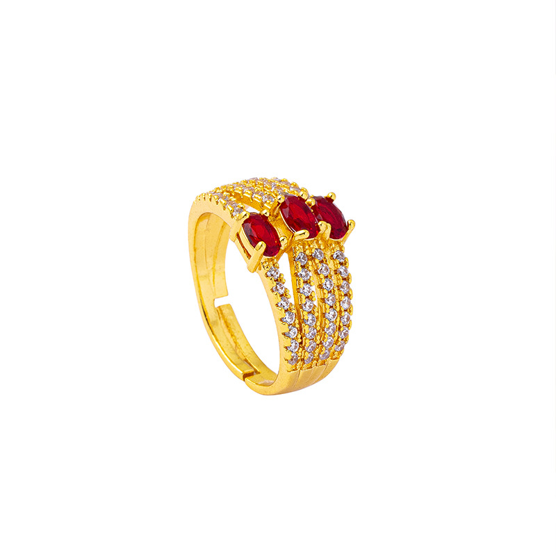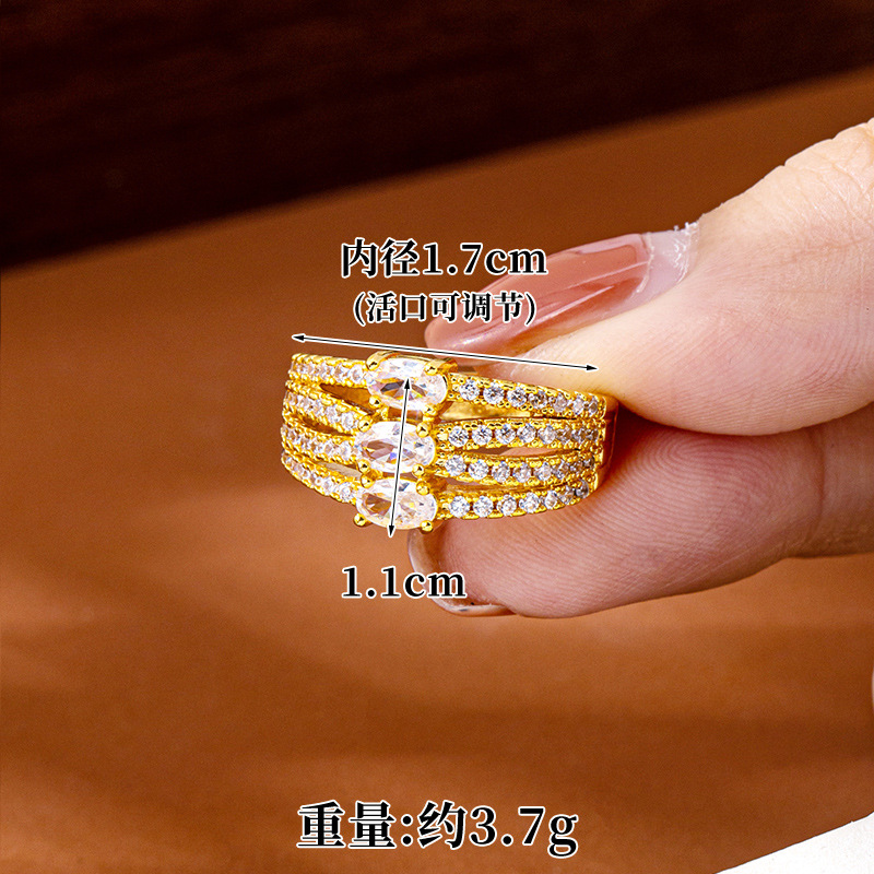 越南沙金戒指镂空多层镶锆线条开口镀金戒指环轻奢高级感宝石饰品