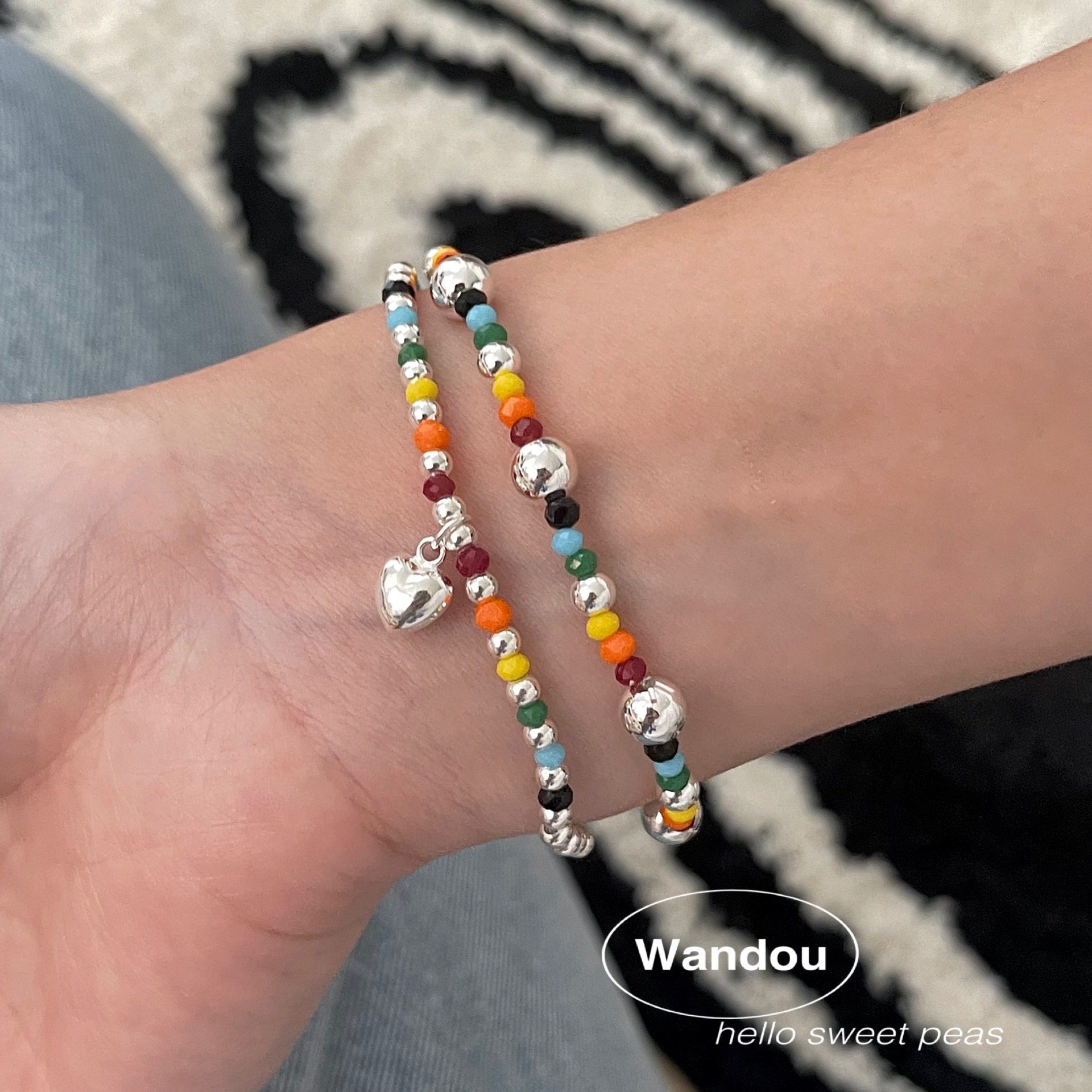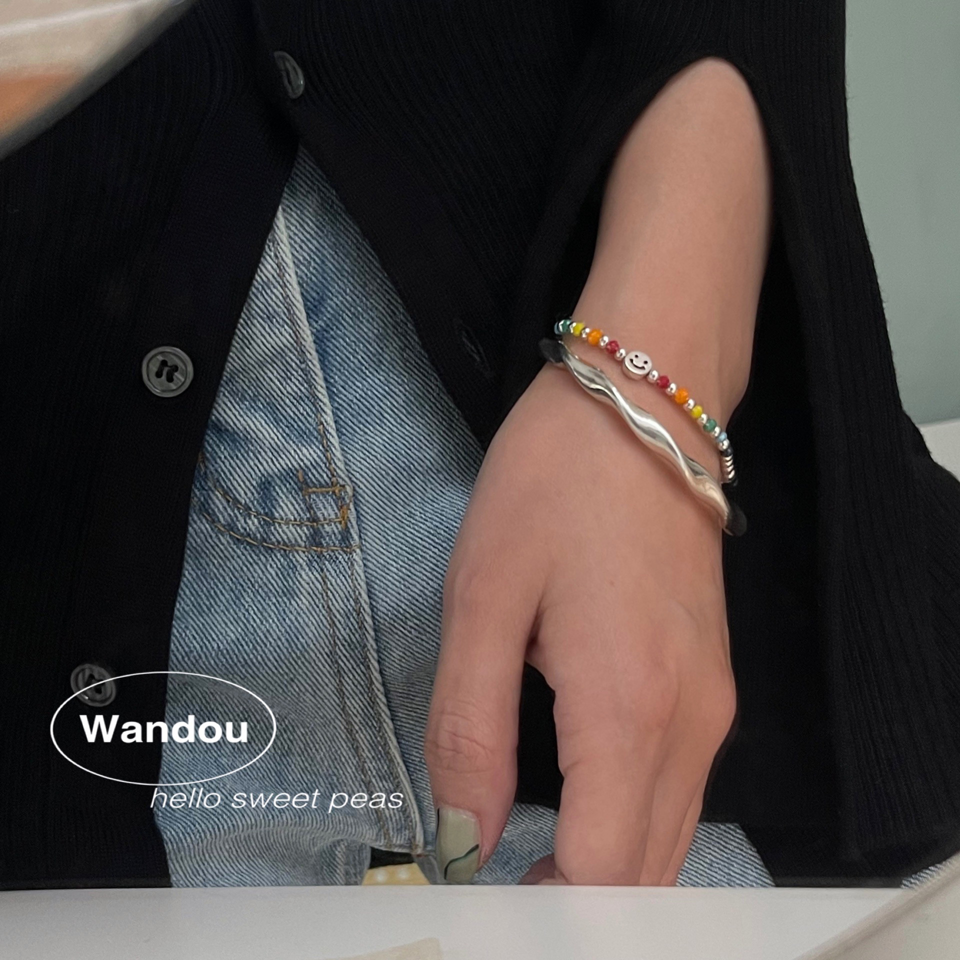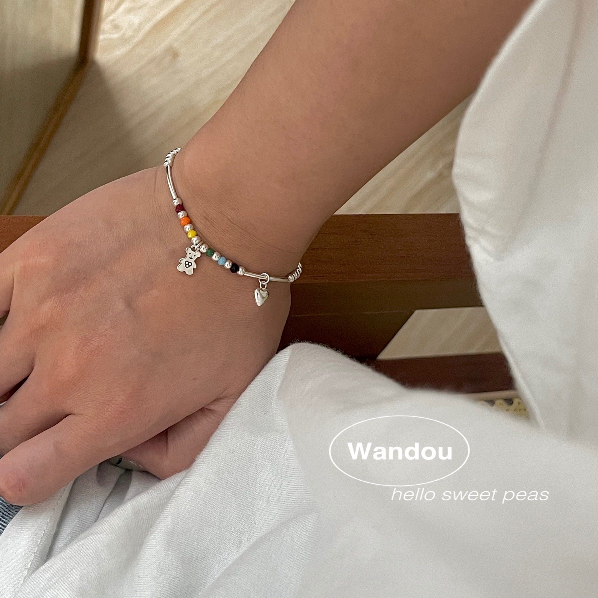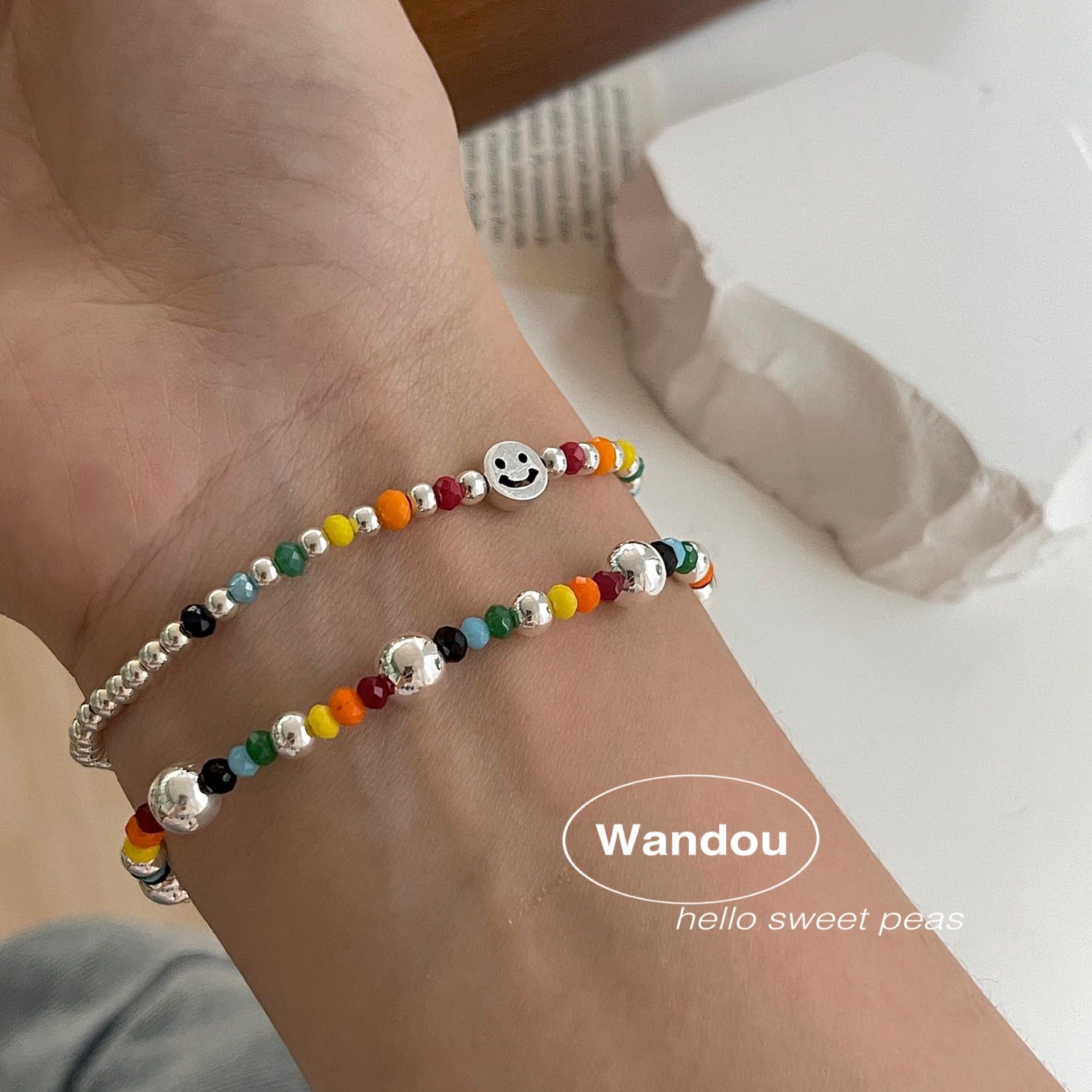 豌豆饰物 纯银纯手工串珠彩虹手链女韩国ins小众设计笑脸爱心手环