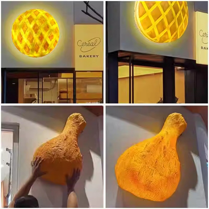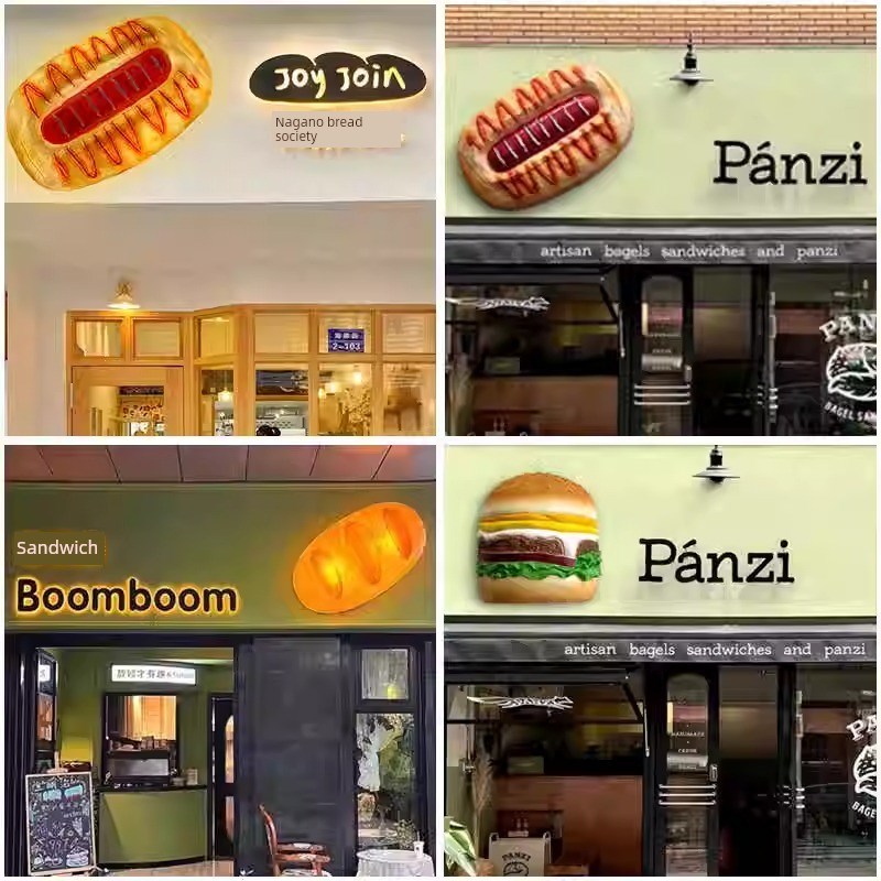 网红面包房门头各种模s拟面包玻璃纤维雕塑模型立体发光装饰