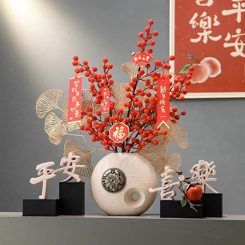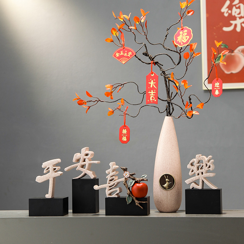 新年平安喜乐电视柜摆件中式客厅家居玄关酒柜鞋柜陶瓷轻奢装饰品