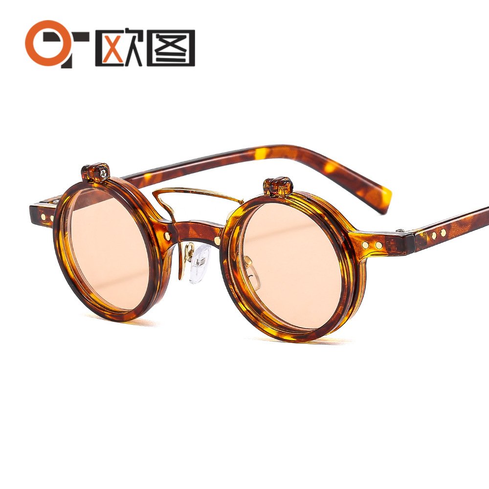 T307欧图新款圆框朋克双层翻盖太阳镜男女士机车潮流个性外贸墨镜