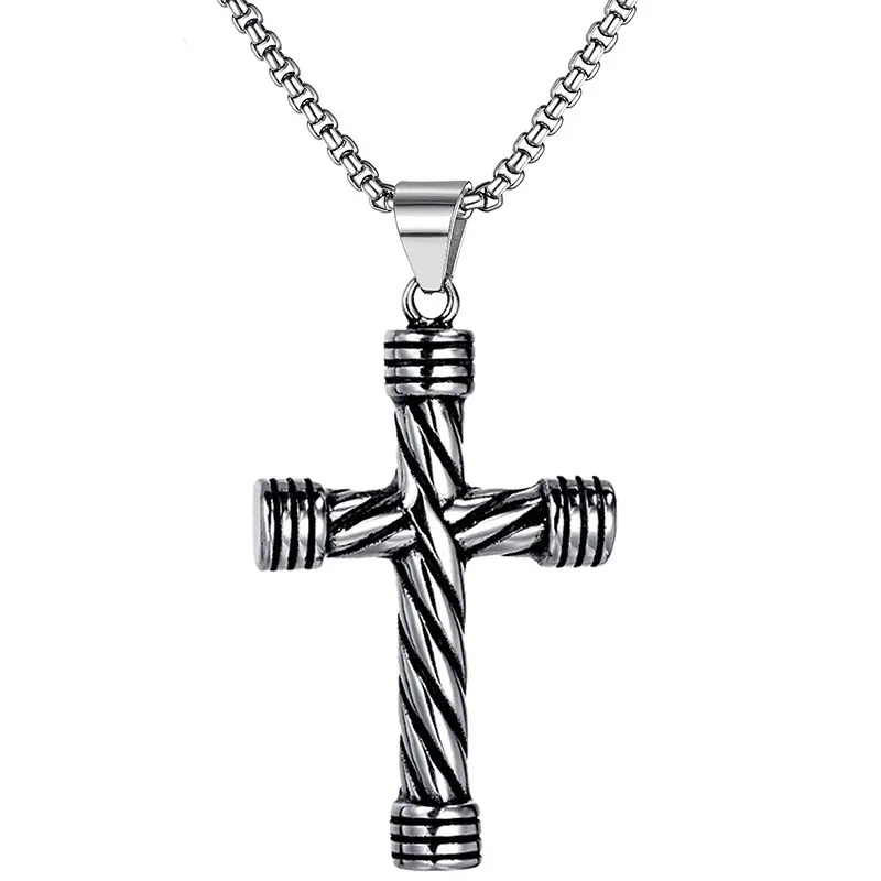 街头潮人hiphop长款十字架麻花项链男女配饰韩版个性嘻哈吊坠挂件
