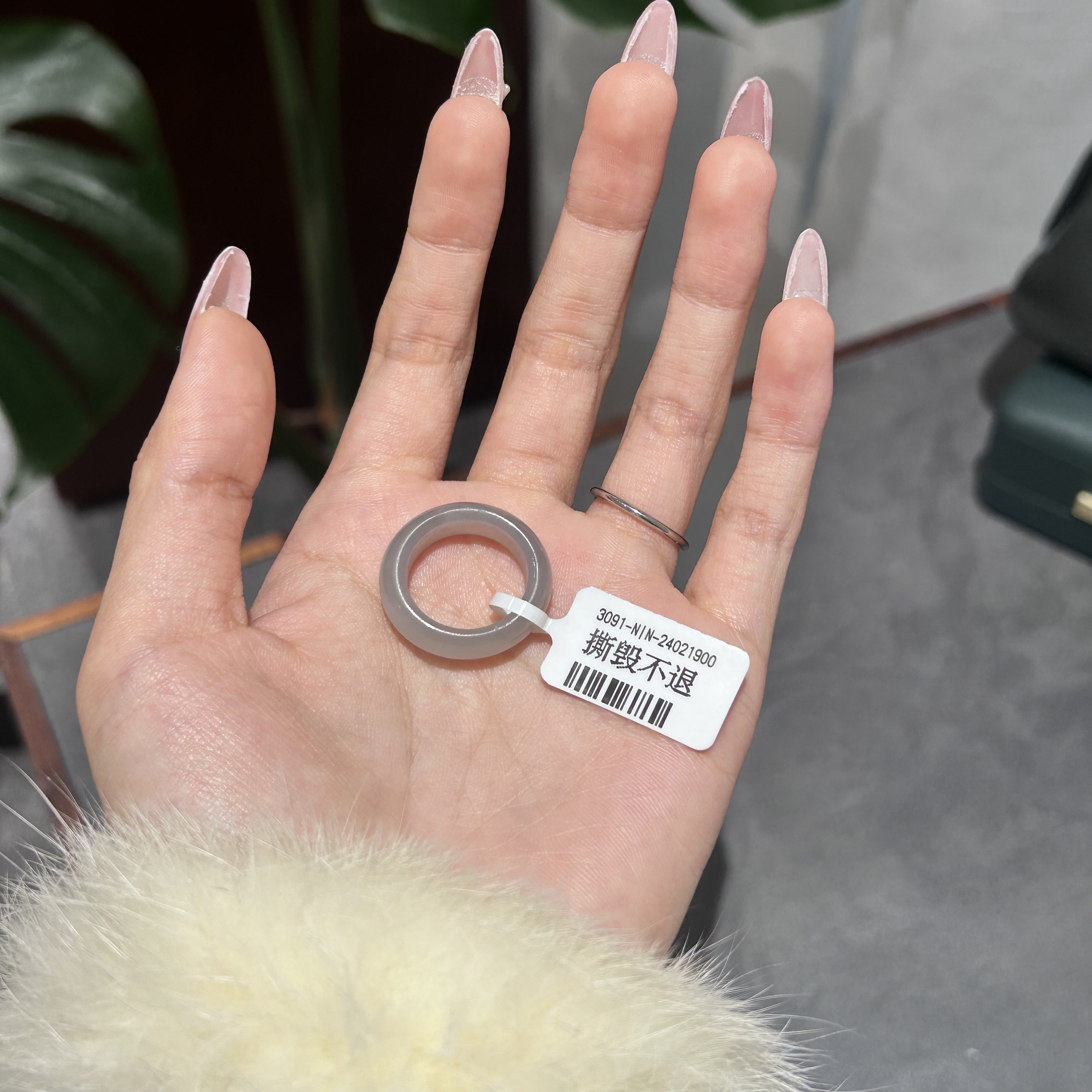 天然和田玉 12.5码 16.4*7.9mm烟紫圆戒 货号3091