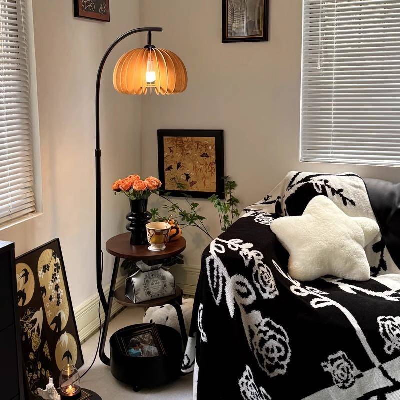 美式复古沙发旁边几落地灯客厅中古风卧室床头置物架收纳立式台灯