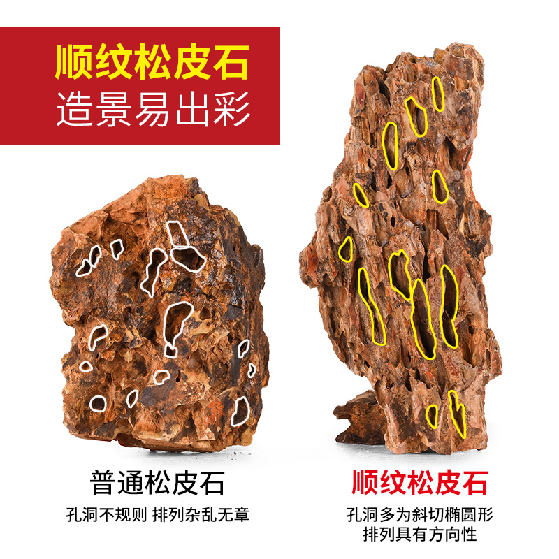 天然松皮石庭院造景石鱼缸水族箱装饰石头客厅假山盆景流水小摆件