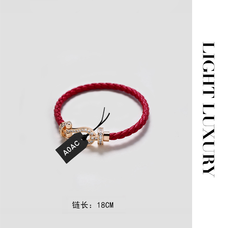 合金合成锆石手链 0653 V金工艺 马蹄 编制手链红色 女