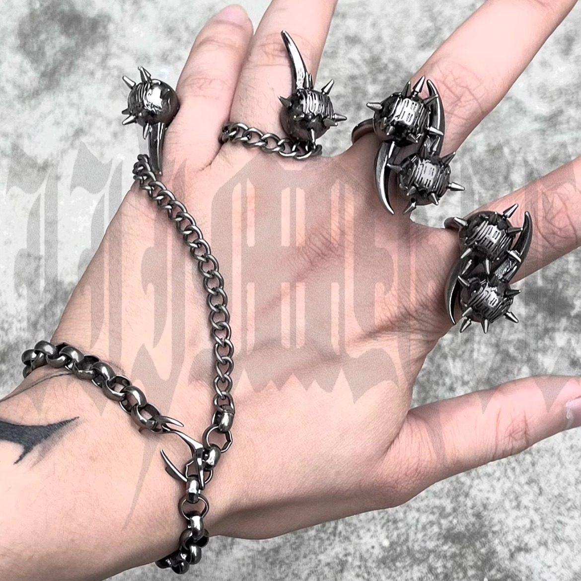IIIMIII 残网I系列 暗黑金属球铆钉戒指