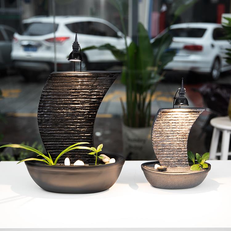 一帆风顺风水轮装饰帆船喷泉流水公司开业现代循环创意摆件超