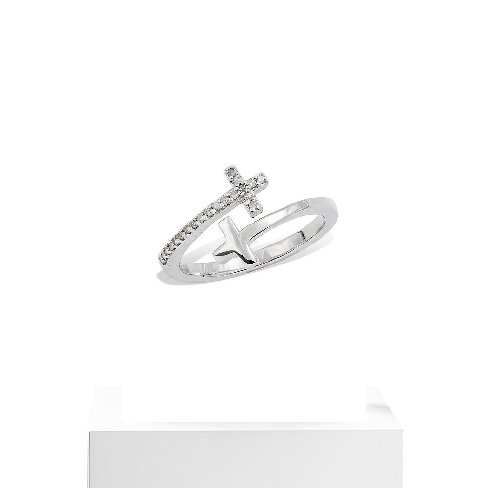 自营 savvy cie jewels.925 纯银镀铑双十字戒指 - 白色 美国奥莱