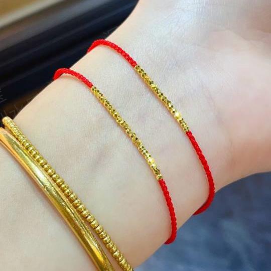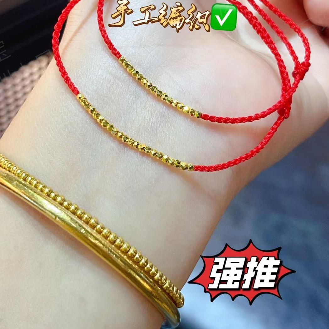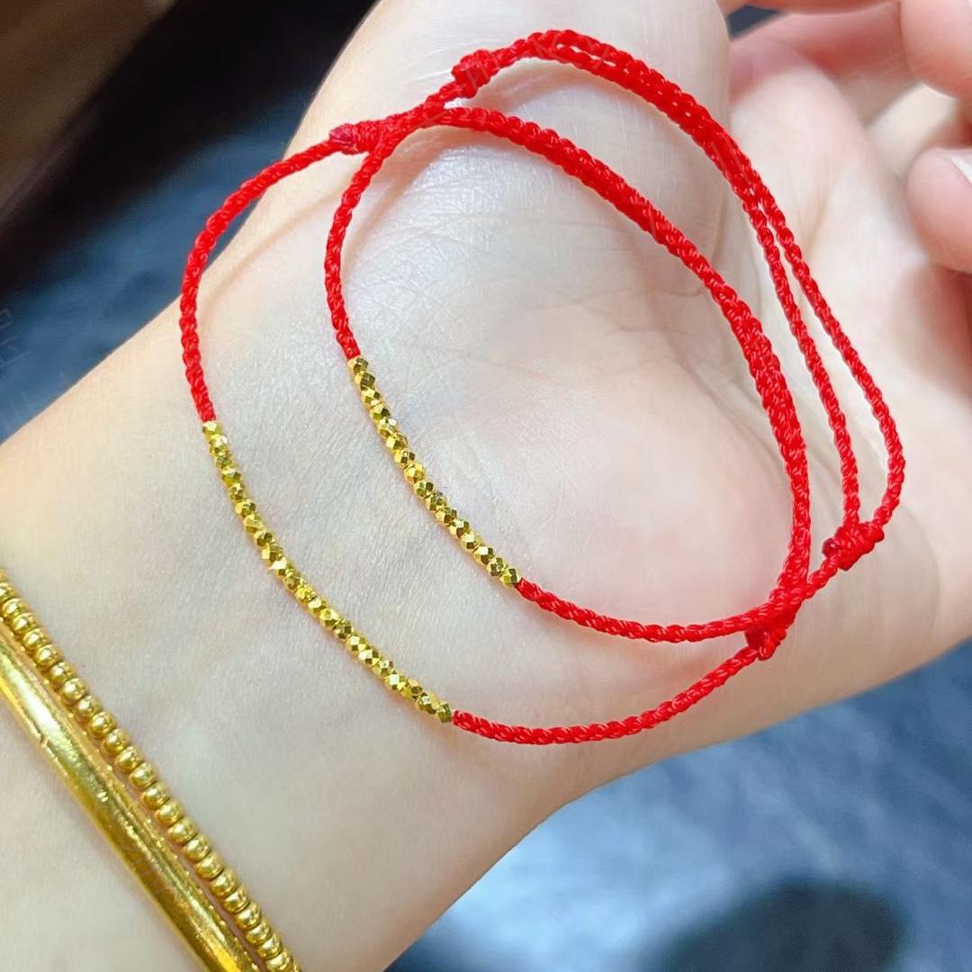 足金蹦迪珠红绳手串黄金爆闪金珠转运珠手绳编织手链本命年红绳女