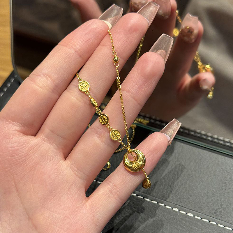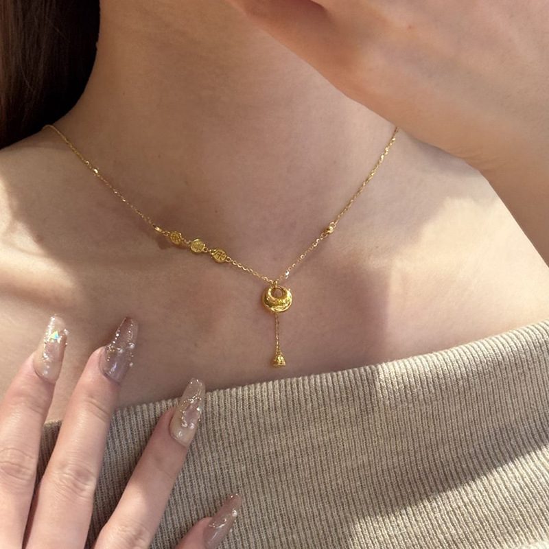 小红书爆款平安喜乐小金坨项链古法新中式精致平安锁扣流苏锁骨链