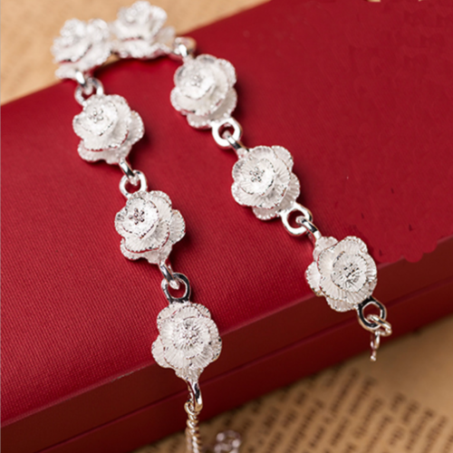 韩版个性带铃铛款手链防过敏玫瑰手链手镯银饰 送女生闺蜜礼物
