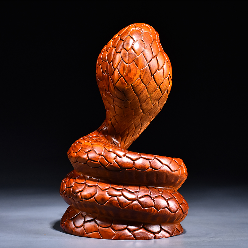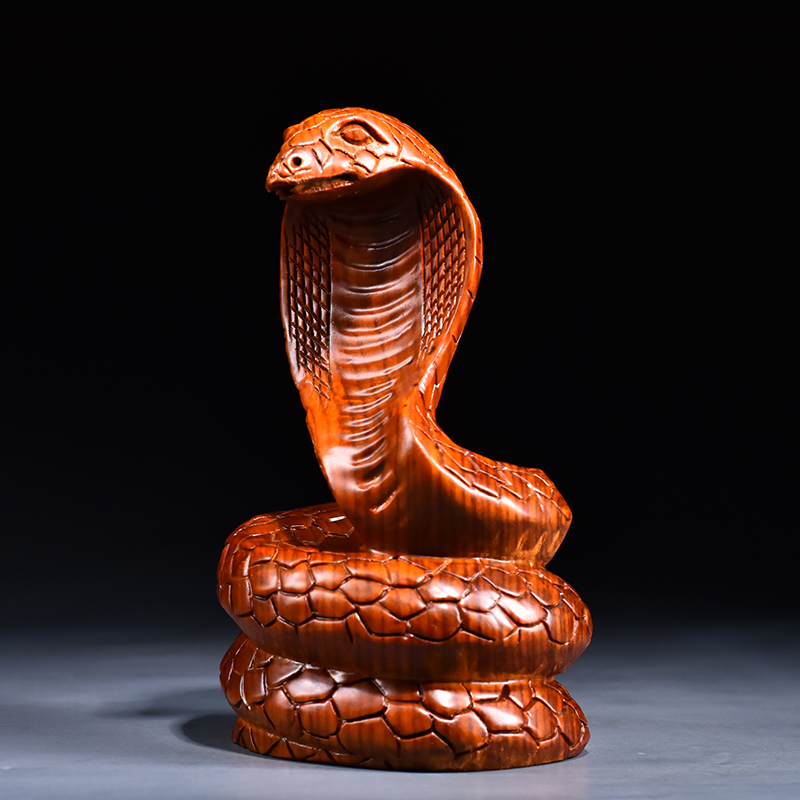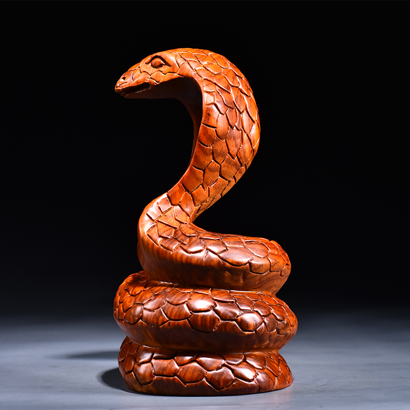 花梨木雕蛇摆件实木十二生肖木制蛇眼镜蛇家居客厅装饰红木工艺品