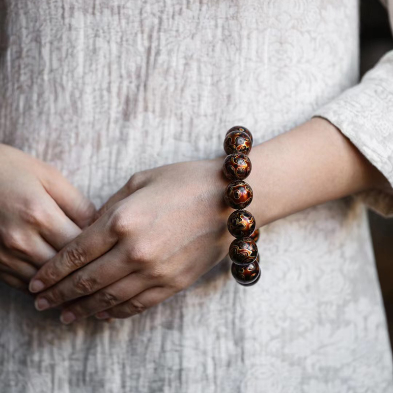 非遗大漆手串琥珀金18mm紫光檀木质佛珠胎底男女生文玩念珠子手链
