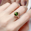 丛利 6x8天然透辉石绿色戒指女s925银黄金色时尚经典大气女戒指