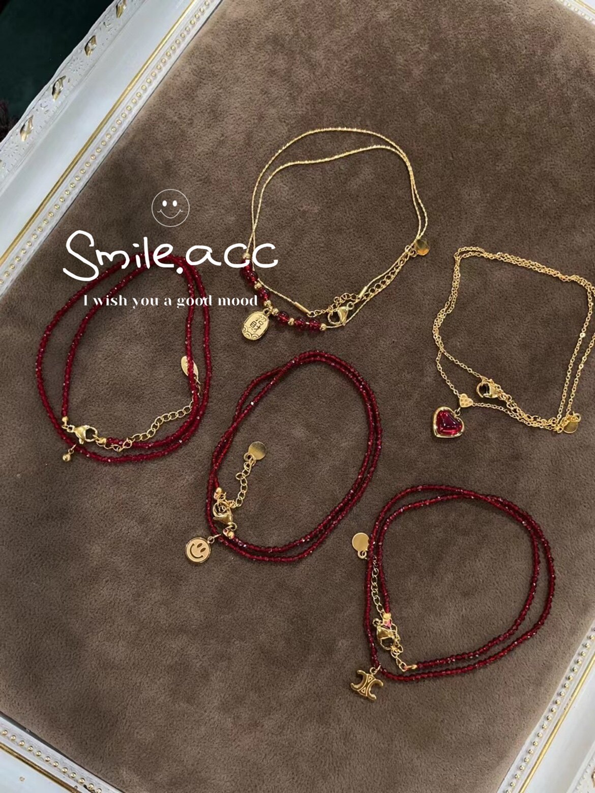 新年红色水晶项链 镀18K金色迷你圆球吊坠锁骨链