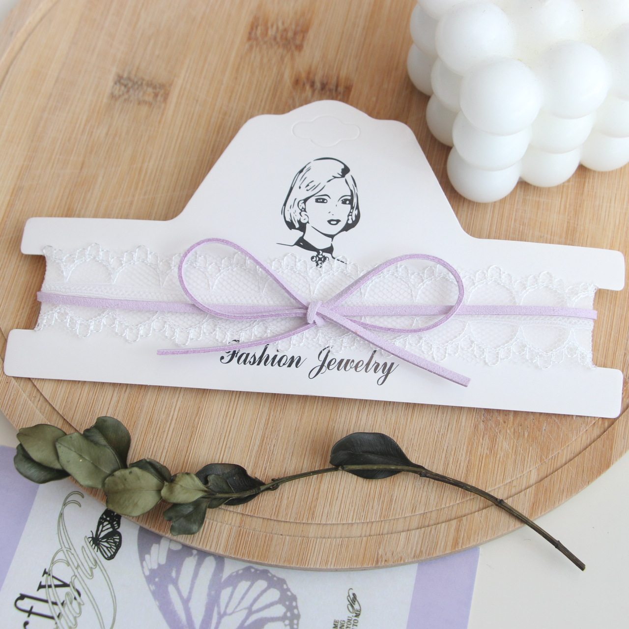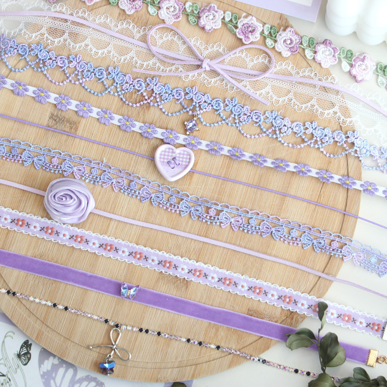 紫色蝴蝶结蕾丝项链女小众设计感锁骨链小清新爱心颈链脖子配饰