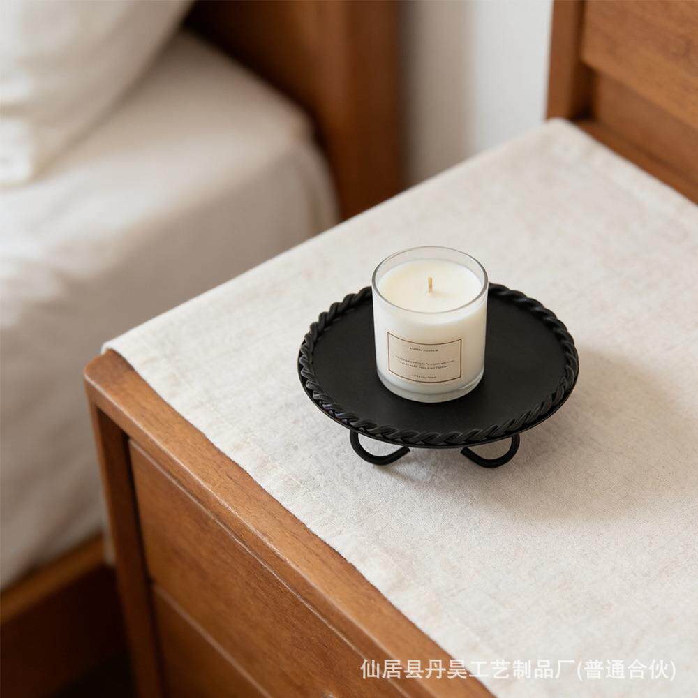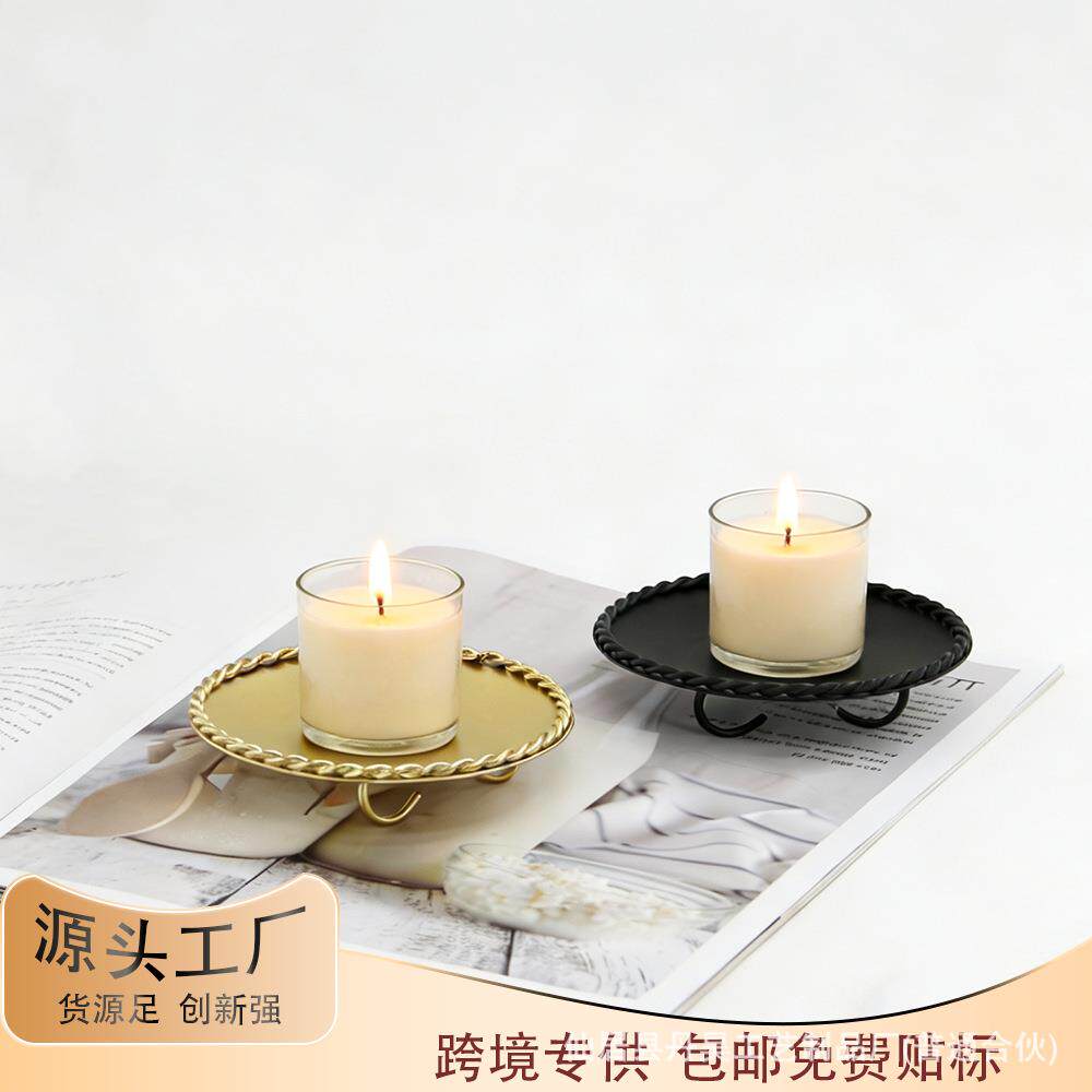 跨境几何圆形铁艺麻花边烛台桌面装饰立体创意蜡烛杯工艺品摆件