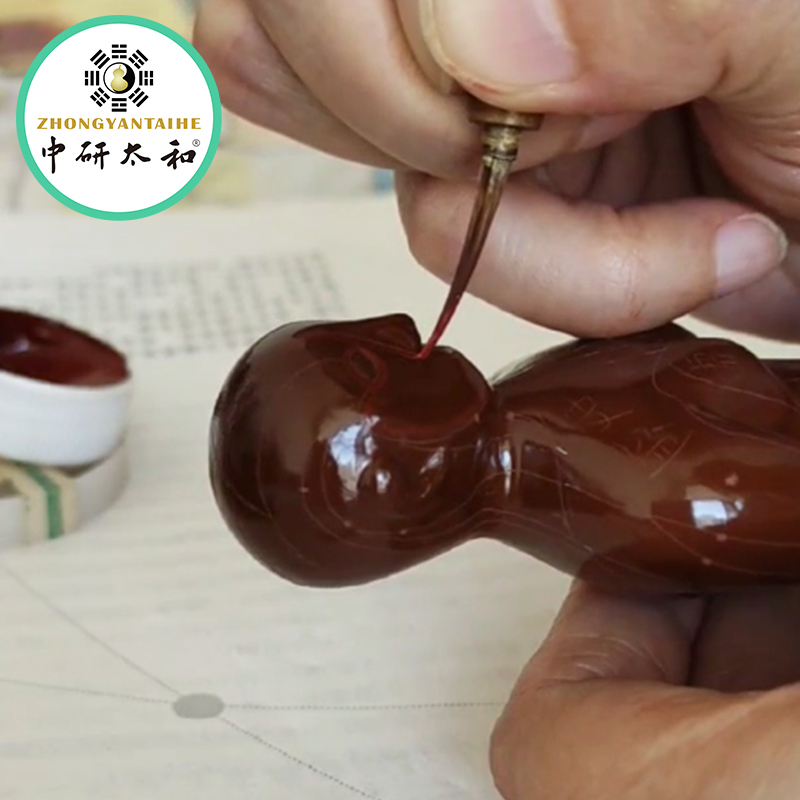 仿西汉经穴髹漆铜人像 木雕摆件 非遗成都漆艺技法中医文创