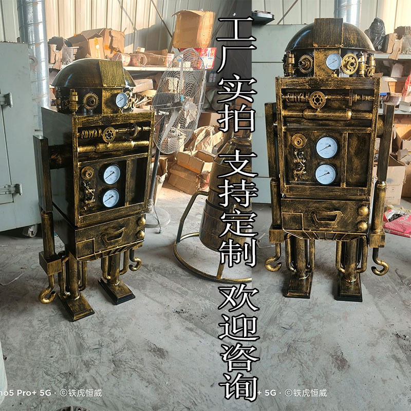 复古loft工业风创意怀旧金属人物铁艺机器人落地摆件餐厅商城装饰