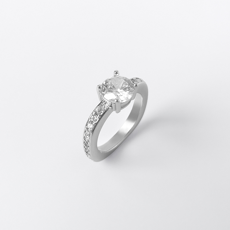 【明星同款】单颗密镶圆锆石银戒指女情侣对戒素圈指环气质闺蜜礼