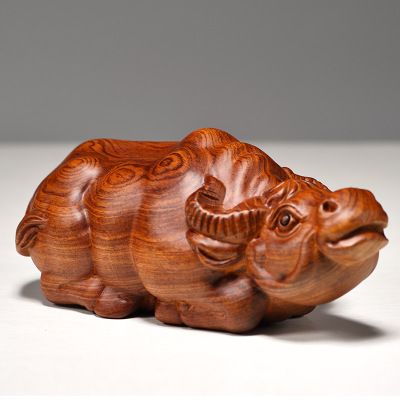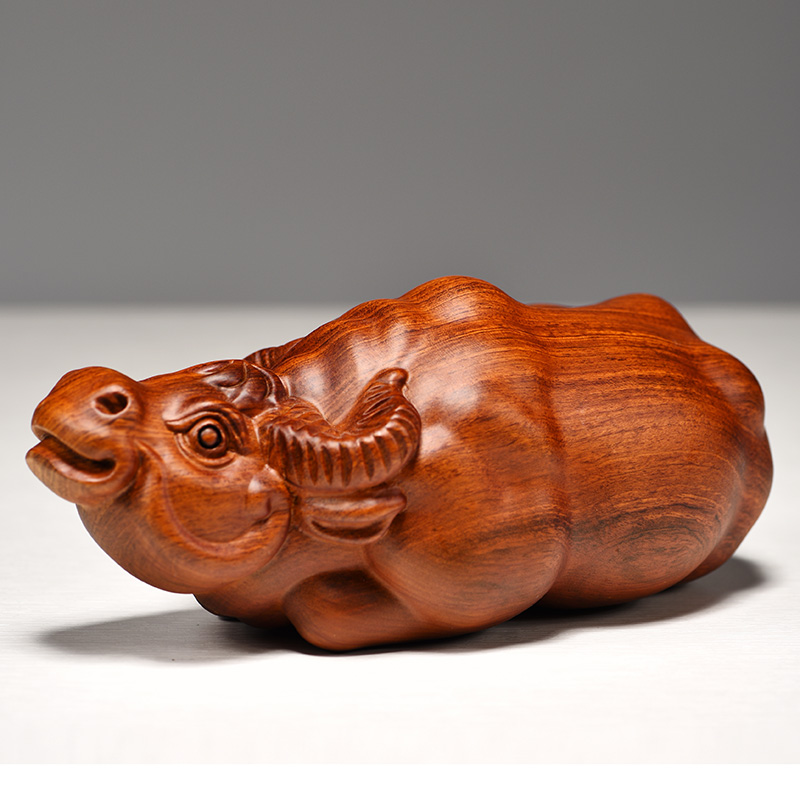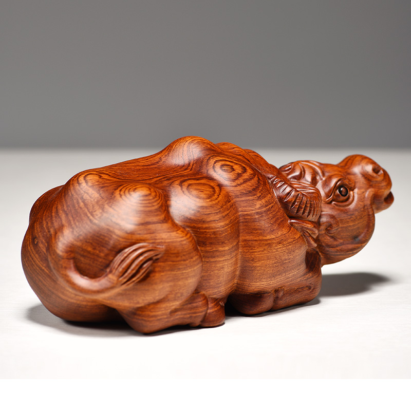 黄色木雕卧牛摆件生肖牛实木雕刻水牛花梨木质家居装饰工艺品摆设