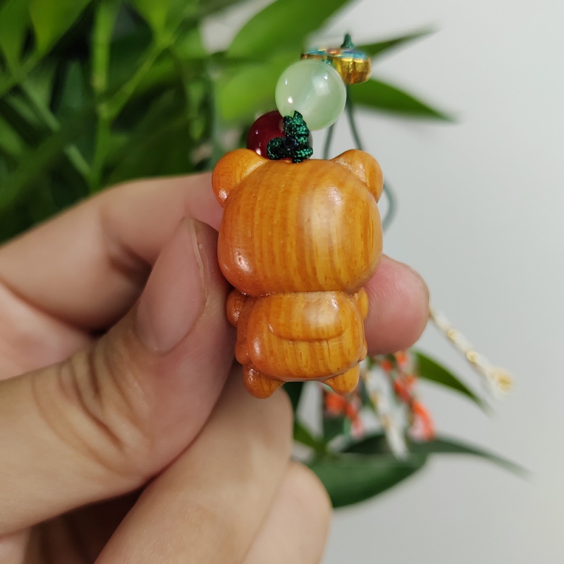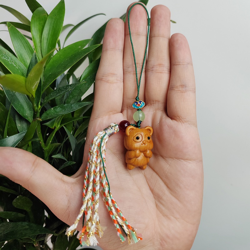 绿檀木背包小熊猫流苏学生随身挂饰包包挂件可爱卡通木雕手机链