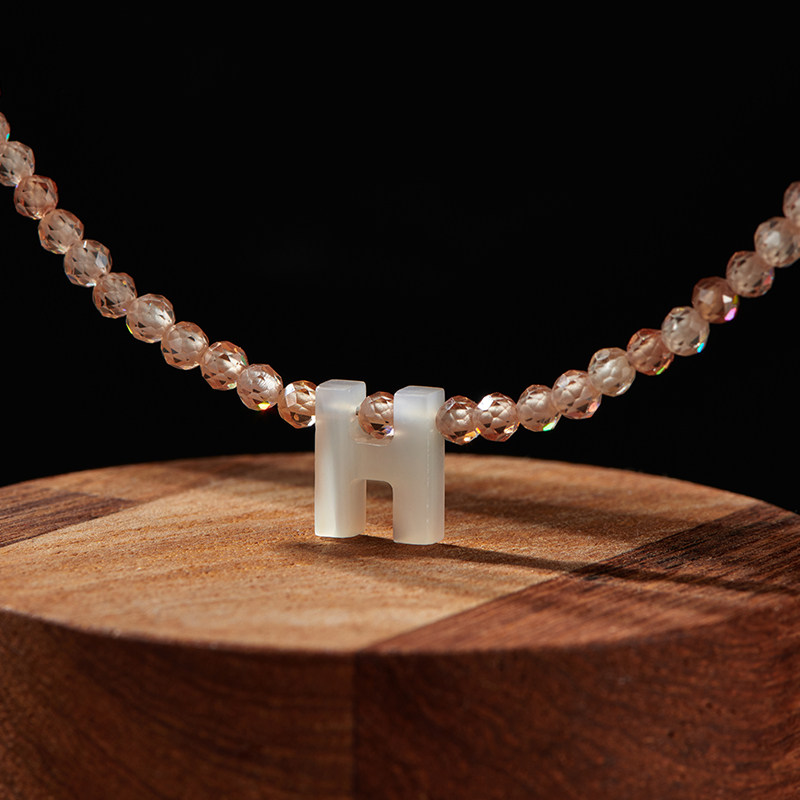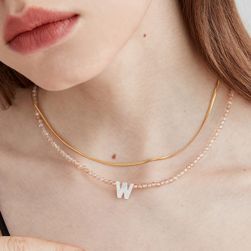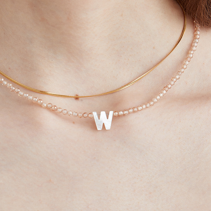 【买3免1】小众设计感白贝字母项链人造水晶串珠颈链锁骨链