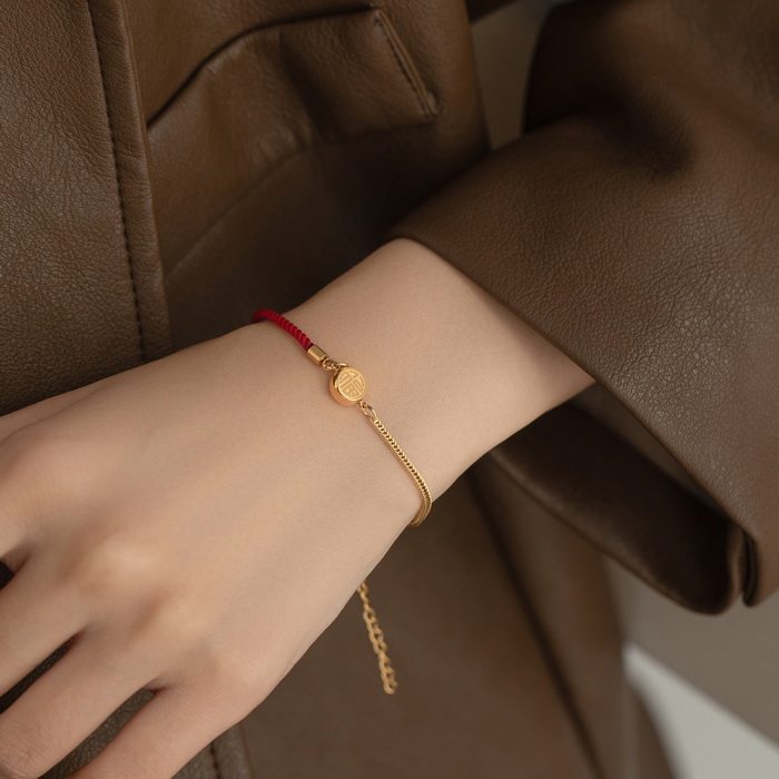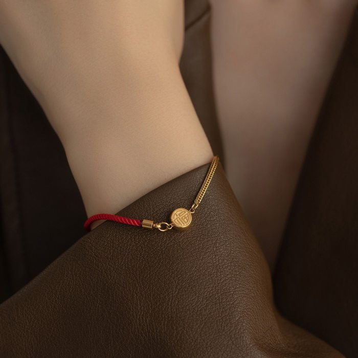 ins小众设计双面小福字本命年红绳手链女新款轻奢考试七夕送女友