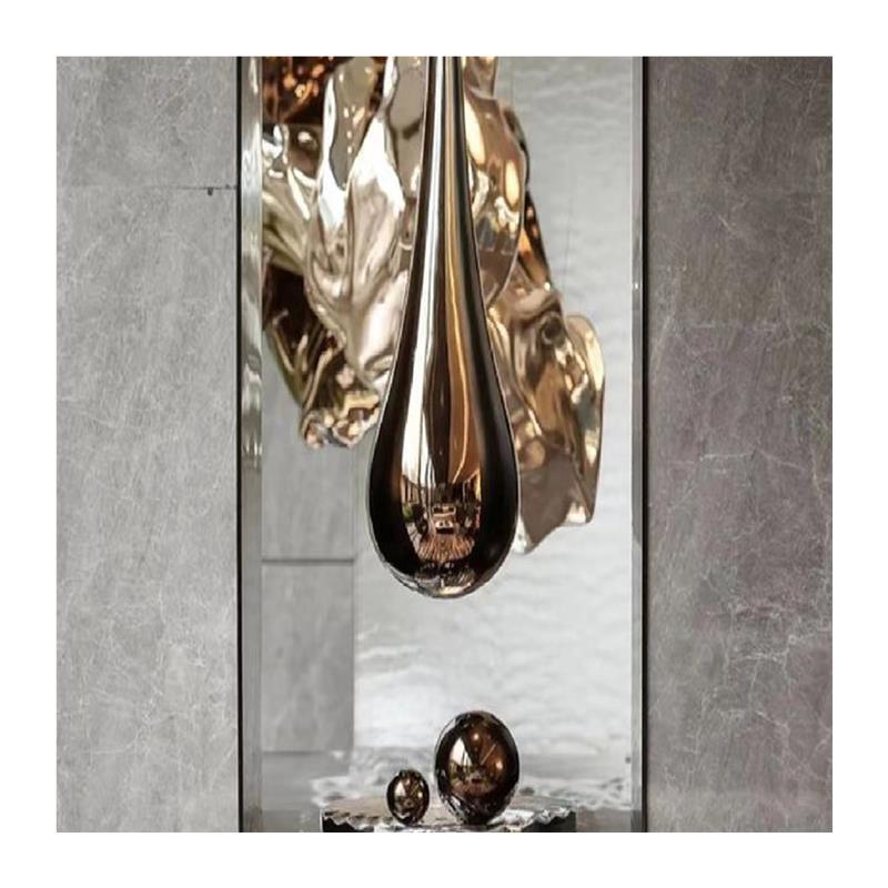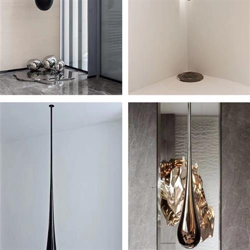 水滴吊顶装饰品不锈钢底座摆件酒店别墅大堂售楼处玻璃钢水滴雕塑
