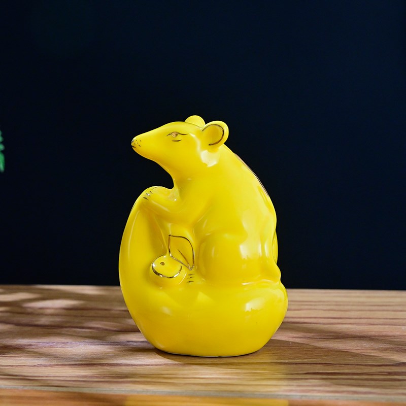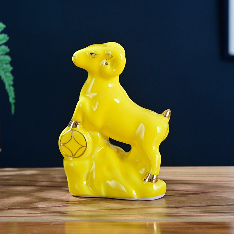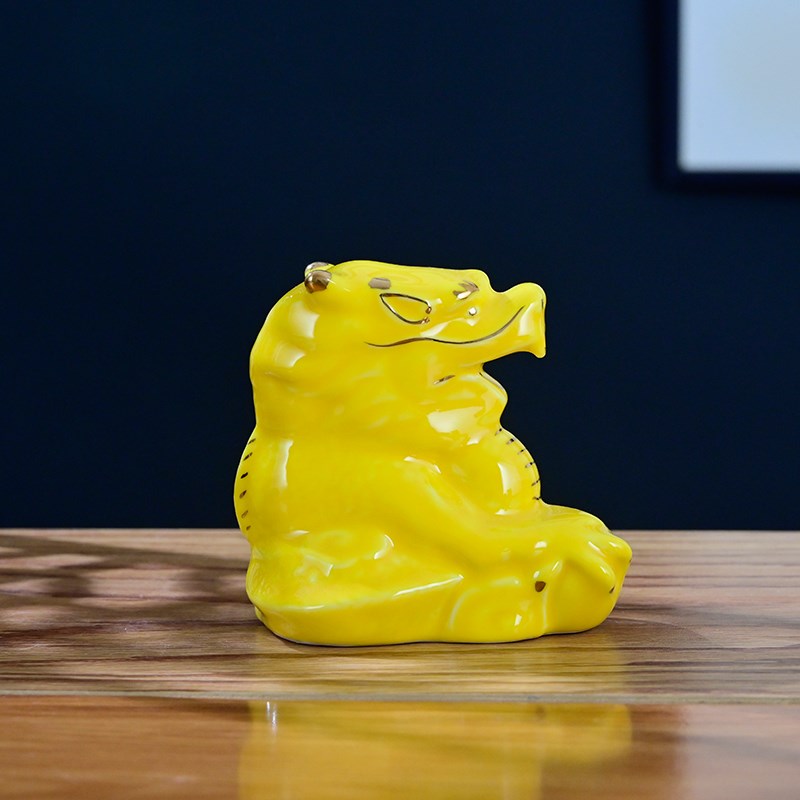 可爱黄色陶瓷小卧牛摆件家居办公室桌面创意装饰工艺品一对吉祥物